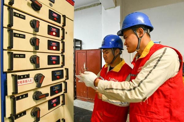 國網(wǎng)重慶江津供電公司青年志愿者對學校配電房進行特巡。王化全攝