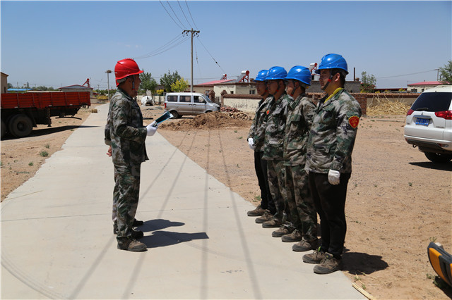 6月3日一早,一行人前往距市區(qū)90公里的海南區(qū)巴音陶亥鎮(zhèn)紅墩村張占飛的家中。為及時高效完成貧困戶家中用電問題,六五四供電分局分局局長王軍永帶領(lǐng)黨員突擊隊成員迅速在工作現(xiàn)場召開班前會,對工作班成員進行了詳細的分工。由于此戶周邊沒有可以直接利用的電源,需要重新架設(shè)一基電桿把電源引到房屋附近。分局黨員突擊隊成員立即分成兩組,一組負責立桿安裝金具,另外一組負責放線。