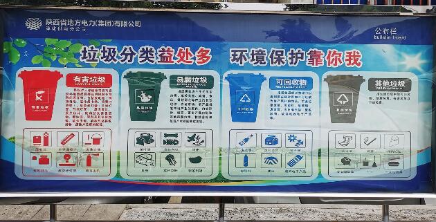 中國電力網(wǎng)訊(通訊員 李娟攝影報道)為倡導(dǎo)綠色生態(tài)、健康環(huán)保的生活方式,進一步倡導(dǎo)垃圾分類理念,近日,淳化供電分公司更新公司文化宣傳欄,對有害垃圾、易腐垃圾、可回收垃圾、其他垃圾等通過圖文并茂的方式做了詳細說明,通過宣傳推廣,營造人人關(guān)心垃圾分類、踐行垃圾分類的良好氛圍,讓"綠色、環(huán)保、低碳"的理念深入人心,從不而斷提高大家自覺愛護環(huán)境衛(wèi)生的意識,讓垃圾分類從口號變?yōu)榱?xí)慣。