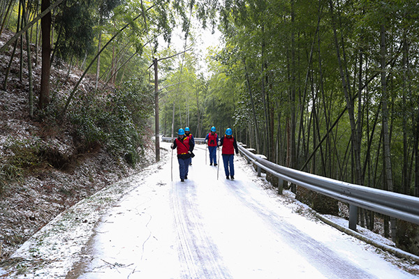 中國電力網(wǎng)訊 1月7日清晨,在平均海拔700米以上的浙江寧海雙峰山區(qū),隨著強(qiáng)冷空氣的抵達(dá),大山深處已覆上皚皚白雪。寧??h黃壇鎮(zhèn)雙峰片區(qū)有2900多戶村民,為了防止冰凍天氣以及積雪對高壓線路的影響,國家電網(wǎng)浙江電力(寧海)紅船共產(chǎn)黨員服務(wù)隊分成四組,一大早就開始對這里的高壓線路進(jìn)行巡視和基礎(chǔ)維護(hù)。