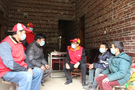 今年受新冠病毒疫情的影響,學校還未正常開學,孩子們都在家中自行學習,隊員采取逐戶上門探望的方式開展服務活動。在李志成、李志祥同學家中,兩兄弟正一起埋頭溫習功課,看到‘紅馬甲’叔叔們在這個時期里來到家里,兩兄弟高興得跳了起來,大聲的呼喊在對面山上挖筍的爸爸趕快回家。兄弟倆的媽媽離家出走十多年未回,爸爸又患上了間歇性精神病,三父子相依為命,生活來源主要依靠農(nóng)村低保補助和叔叔的資助,家境貧困令人心酸。看到兩兄弟興高采烈地拿著叔叔們給的‘紅包’,李爸爸眼中充滿了晶瑩和感動,緊緊地握著隊員們的手無法言語。李依婷同學是六年級班上唯的女生,文靜秀氣不愛言語,由于父母離異后紛紛外出,小依婷跟著年邁的奶奶共同生活,學習非??炭?,成績在班上排名前列,隊員們?yōu)樗蜕狭伺D毯臀繂柦?,和她一起翻閱了學習筆記,親切鼓勵她要努力學習,好好報答奶奶的養(yǎng)育之恩···