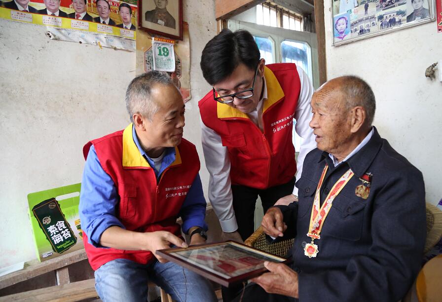 中國電力網(wǎng)訊 11月19日上午,浙江慈溪市供電公司紅船共產(chǎn)黨員服務(wù)隊(duì)王軍浩、宋鑫等黨員志愿者,帶著水果、牛奶等慰問品,懷著對退伍老兵的崇敬之情,來到坎墩街道三群村,走訪看望了九旬退伍老兵傅萬久。