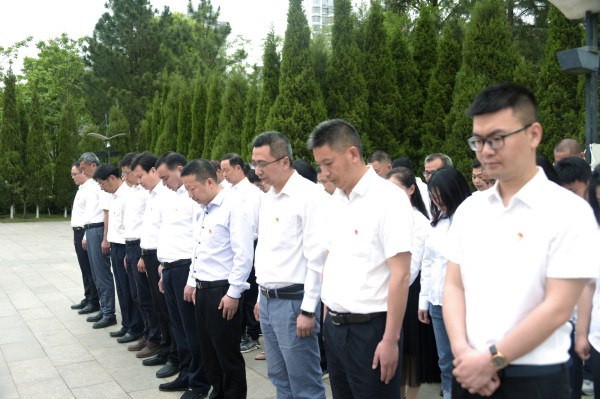 在莊嚴(yán)的革命烈士紀(jì)念碑前,全體人員隊列整齊,懷著對革命先烈的崇敬之情,向烈士們致敬、默哀、敬獻花籃,追憶革命先烈的不朽功勛。