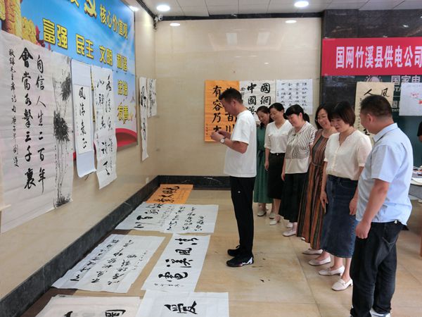 9月19日,國網(wǎng)竹溪縣供電公司第二屆“清廉國企”書畫筆會在機關(guān)一樓大廳舉行,書畫創(chuàng)作者們充滿激情,現(xiàn)場揮毫潑墨,呈現(xiàn)了一幅幅充滿廉潔主題書法和繪畫作品。前來參展的員工們帶著濃厚的興趣,品味著這些作品。