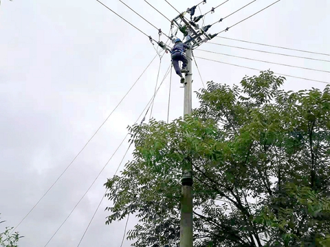 10千伏虎京線梯后山支線,羊圈山配變380伏羊圈山TB3.2號桿(四方桿),倒桿斷線,配電管理所報修人員樂禮培接到95598報修信息,與客戶聯(lián)系后,趕到現(xiàn)場查看,是380伏四方桿,倒桿斷線。從此桿接下戶線3戶,隔離電源,報告領(lǐng)導(dǎo),需要換桿換線搶修。配電管理所任海忠主任立即組織施工隊到現(xiàn)場進行勘察,確定施工方案,審批搶修物資。受災(zāi)戶楊徳久跟工作人員說:“昨晚上一夜下大雨,6點左右聽到房后蹦的一聲響,我以為是打雷,起床開燈,燈不亮,要燒水,電磁爐也沒有反應(yīng),再轉(zhuǎn)到電表旁看看總閘給跳,嚇我一跳,電表箱懸在空中,電桿倒了,等緩過神來才打95598報修電話。你們報修師傅來到,我心才落下!現(xiàn)在,我高興!感謝供電公司,感謝各位師傅,把電桿換成高的,總線也換成巴掌寬的叫什么線該?”凃師傅告訴他,這叫集束導(dǎo)線。不單只是他們這里,在端午節(jié)期間配電管理所消除了5個安全隱患,提高了供電可靠性。