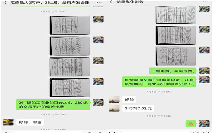 如何確保舉措落實(shí)到位是關(guān)鍵,分局員工逐一排查用戶用電性質(zhì)與行業(yè)分類,排查高耗能用戶129戶,其中涉及定照10戶。確定用戶后,分局工作人員進(jìn)行計(jì)費(fèi)參數(shù)設(shè)置,以保證定照電量享受優(yōu)惠政策。截止3月底,六五四供電分局已將符合降價(jià)政策的所有工商業(yè)電量完成降價(jià)退費(fèi)。此次文件中還明確規(guī)定了臨時(shí)性疫站用電價(jià)格執(zhí)行居民合表電價(jià),但由于公烏素地區(qū)臨時(shí)檢疫站安裝時(shí)間較早,3月電價(jià)已經(jīng)執(zhí)行工商業(yè)及其他(單一制)電價(jià)。為保證防疫站電價(jià)正確執(zhí)行,六五四分局工作人員立即奔赴現(xiàn)場(chǎng)勘查,并根據(jù)實(shí)際所用電量進(jìn)行追退。