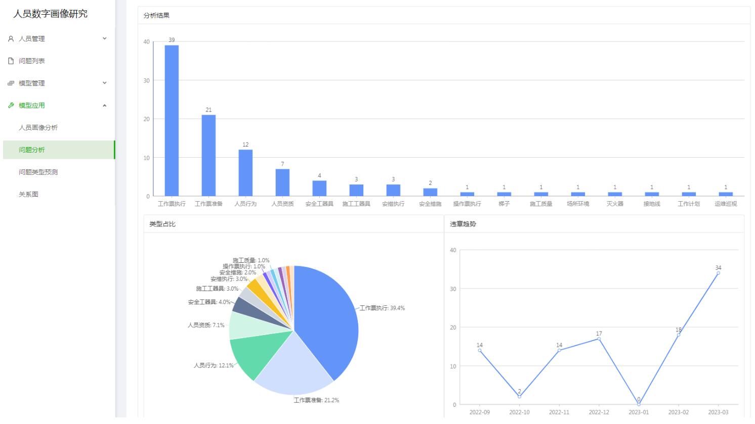 “人員數(shù)字畫像系統(tǒng)建模就是將作業(yè)人員信息的標簽化,通過搭建智能計算評價系統(tǒng),自動提取歷史違章數(shù)據(jù)進行分析計算,能夠全面細致地展現(xiàn)作業(yè)人員的信息全貌,并提出針對性培訓建議,還可以從違章單位、類別以及頻次等多維度以圖表展示數(shù)據(jù)分析結果,大大解放了以往人工歸類統(tǒng)計分析的勞動力。”余姚市宏宇輸變電工程公司安監(jiān)部項目負責人介紹該系統(tǒng)時津津樂道。