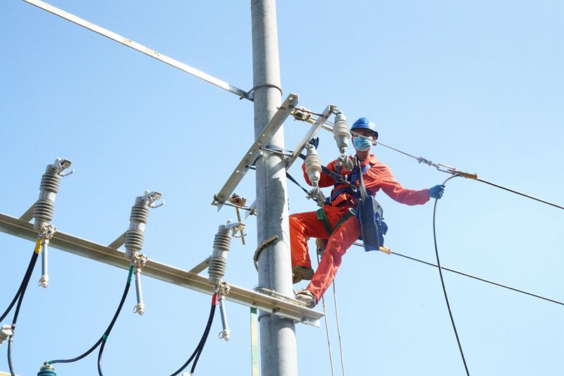 施工人員正在進(jìn)行桿上作業(yè)