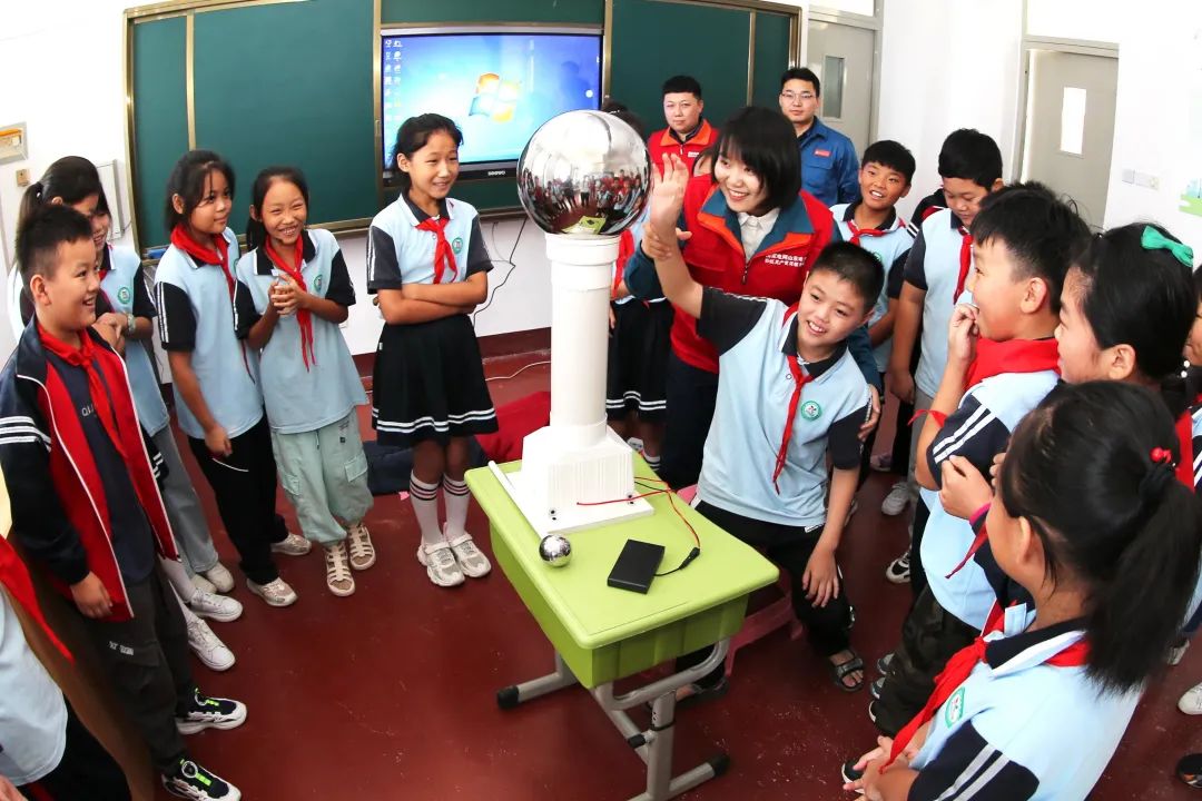 國(guó)網(wǎng)山東棗莊供電公司志愿者在薛城夏莊小學(xué)電力愛(ài)心教室,與學(xué)生一起做用電小實(shí)驗(yàn)