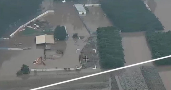 國網(wǎng)空間技術(shù)公司無人機(jī)傳回的涿州受災(zāi)畫面。(程海濤)