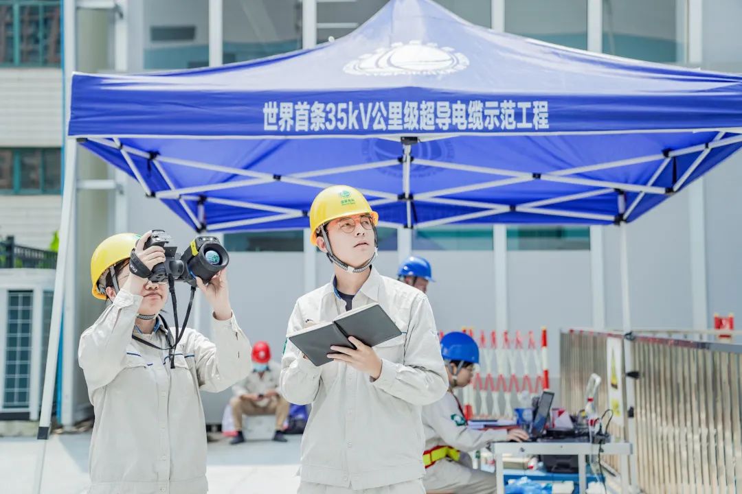 上海市南供電公司運(yùn)維檢修員工為超導(dǎo)輸電工程紅外測(cè)溫。