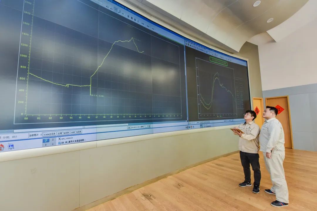 上海市南供電公司調(diào)控運(yùn)維員工監(jiān)控超導(dǎo)輸電工程運(yùn)行參數(shù)。