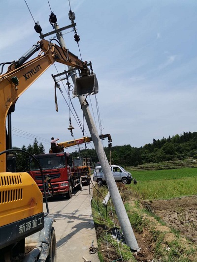 14時09分,經(jīng)過近6個小時的奮力搶修,被撞斷的電桿成功更換,10千伏荷塘線恢復正常供電。