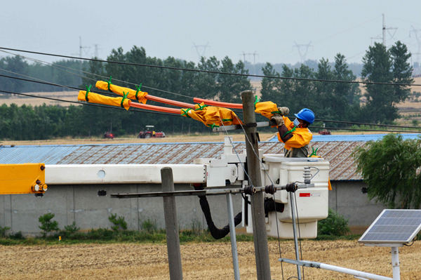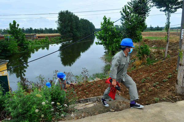 “張主任,陳廟一級(jí)站是2011年中央小農(nóng)水重點(diǎn)縣項(xiàng)目,專變停運(yùn)時(shí)間長,村里抗旱想重新啟用專變。專變6月5日的試驗(yàn)合格報(bào)告在這兒。現(xiàn)在需要安裝表箱表計(jì)、更換老化嚴(yán)重的10千伏引下線。”6月5日下午,陳豐功匆匆來到薛集供電所,向供電所主任張鵬求助,“這幾天持續(xù)高溫,村里打算用泵站進(jìn)行一級(jí)提灌,把低洼處的水提灌到高處,服務(wù)4個(gè)小組的1900畝莊稼抗旱……”