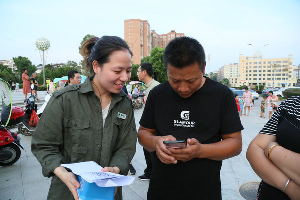 中國電力網(wǎng)訊 “大叔您看,只需下載網(wǎng)上國網(wǎng)APP,綁定戶號,就可以實(shí)時(shí)查詢電費(fèi)、繳費(fèi),現(xiàn)在繳費(fèi)還可以抽電費(fèi)紅包呢……”7月17日晚,國網(wǎng)樂安縣供電公司青年志愿者在縣城四九廣場擺開攤位,開展“網(wǎng)上國網(wǎng)”宣傳推廣活動(dòng)。