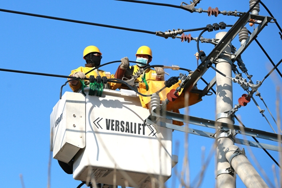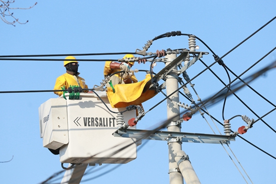 中國電力網(wǎng)訊 12月15日,氣溫降至零下8攝氏度,在濰坊壽光市北洛工業(yè)園區(qū),國網(wǎng)壽光市供電公司光明服務(wù)公司工程五隊(duì)帶電作業(yè)人員冒著刺骨的寒風(fēng)對10千伏鄉(xiāng)直線臨澤支線041號桿進(jìn)行帶電接火作業(yè),及時滿足客戶用電需求,為冬季園區(qū)企業(yè)和居民安全可靠用電提供保障。