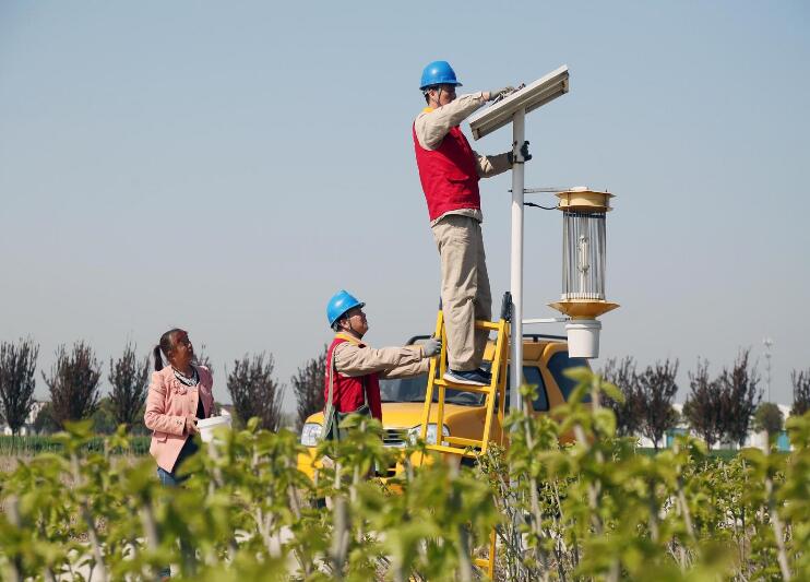 供電員工在桑葚種植園檢查光伏設備。 孫永興 攝