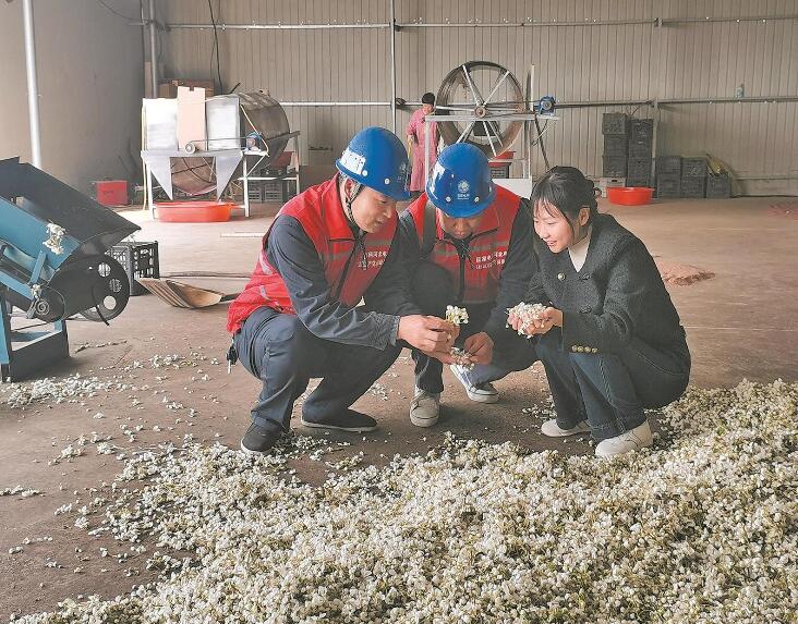 第二天,張少冉和3名同事從距離車間最近的電源點接線80米,幫助加工車間及時通上了電。“多虧了供電公司快速接電,讓我們新建的梨花加工車間能盡快投入使用。現(xiàn)在我們的生產(chǎn)車間每天可以加工梨花30余噸。”企業(yè)負責人聶佳明說。