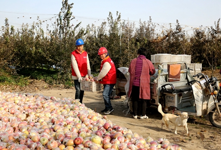 11月26日,國(guó)網(wǎng)江蘇電力睢寧縣供電公司王集供電所服務(wù)隊(duì)員來到蘇塘果園幫助果農(nóng)采摘蘋果,并向他們介紹冬季安全用電和電力保護(hù)知識(shí),深受果農(nóng)好評(píng)。