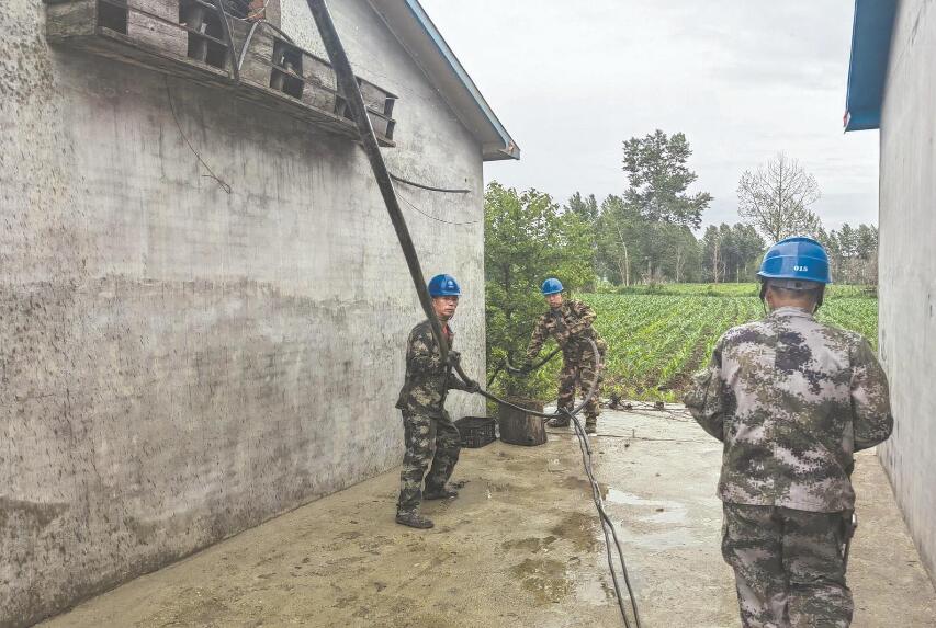 供電員工為村內(nèi)自維水泵更換電纜。 穆永來