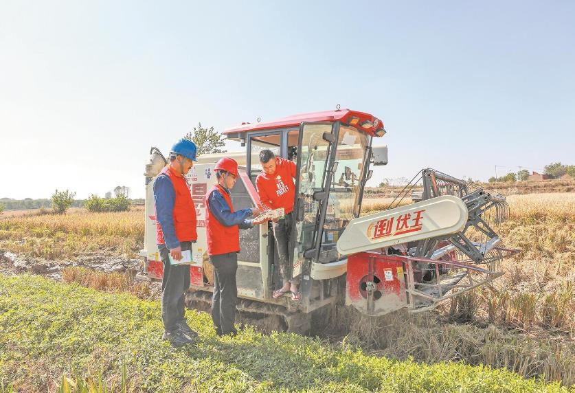 2024年秋收期間,在肥東縣楊店鄉(xiāng),黨員服務隊隊員為客戶講解安全用電知識。 陳海東 攝