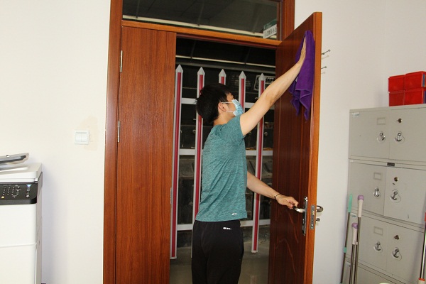 中國電力網(wǎng)訊 “大家把門和柜子上面都擦一擦、消消毒,讓病毒無處可藏”,5月19日,新疆生產(chǎn)建設(shè)兵團(tuán)第一師電力有限責(zé)任公司中心調(diào)度所開展衛(wèi)生大掃除活動,確保疫情防控?zé)o死角。