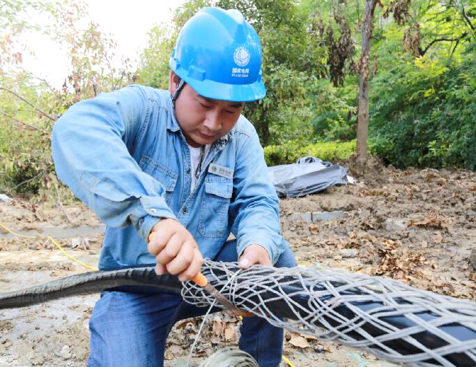 中國電力網(wǎng)訊 6月30日上午,在安徽利辛縣第一中學(xué)濱河校區(qū),國網(wǎng)利辛縣供電公司外線施工人員正在10千伏延陵154線深達(dá)4米的電纜井內(nèi)施工作業(yè),兩條規(guī)格為3*240平方毫米的高壓電纜將從該電纜井下穿過,在地下穿行約100米后通往道路的另一側(cè)電纜井,使得該校連通一條備用電源,與該校原有的10千伏河濱173線構(gòu)成雙電源,以供今年高考期間應(yīng)急使用。