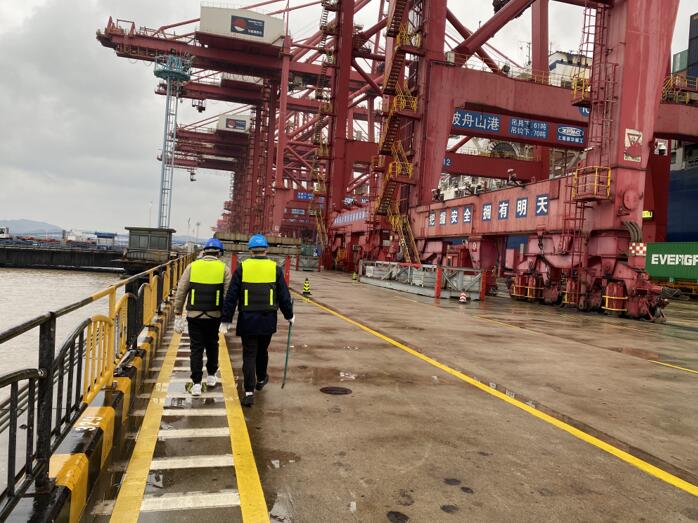 受冷空氣侵襲,寧波氣溫全面下降,又恰逢接連兩天的冬雨,濕冷的環(huán)境給高壓岸電巡檢工作帶來了嚴峻的考驗。為保證巡檢工作按時完成,國網寧波供電公司高壓岸電運維小隊人員不畏嚴寒,順利完成了高壓岸電箱變內各電源設備運行情況、箱變到前沿接電箱間連接電纜破損情況以及前沿接電箱插口腐蝕情況進行常規(guī)性檢查。