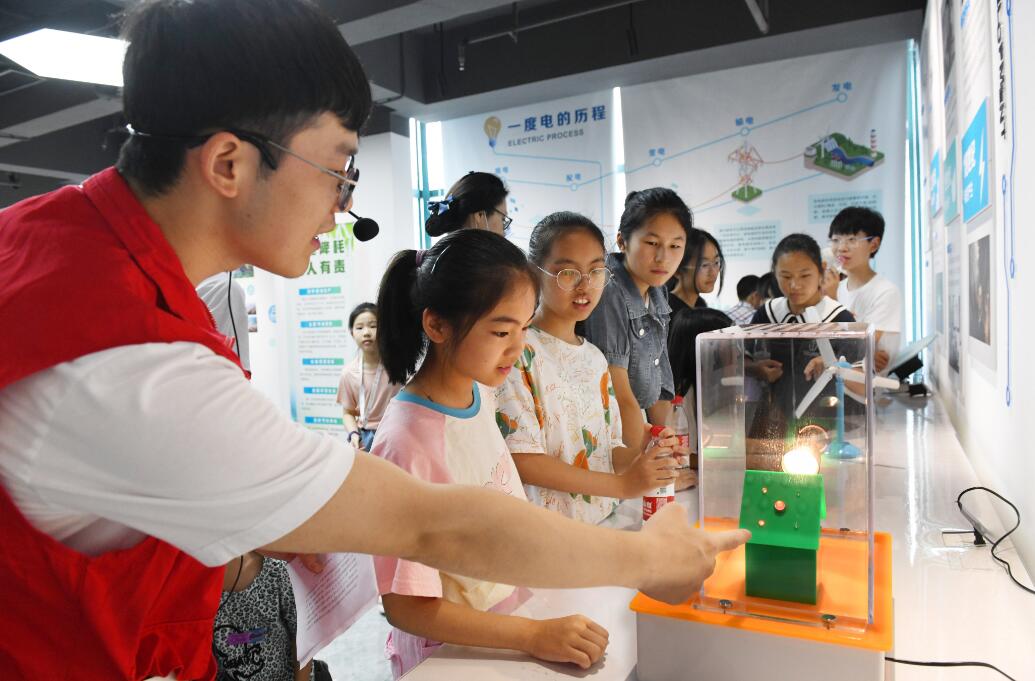 中國(guó)電力網(wǎng)訊 (通訊員 苗云夢(mèng))“小朋友們知道一度電是怎么來的嗎?”7月14日上午,在國(guó)網(wǎng)余姚市供電公司新時(shí)代文明實(shí)踐基地內(nèi),該公司大城小愛志愿者張楊歡正給近30名學(xué)生講解一度電的故事,帶領(lǐng)他們?cè)趯W(xué)習(xí)探索中感受安全用電的重要性。