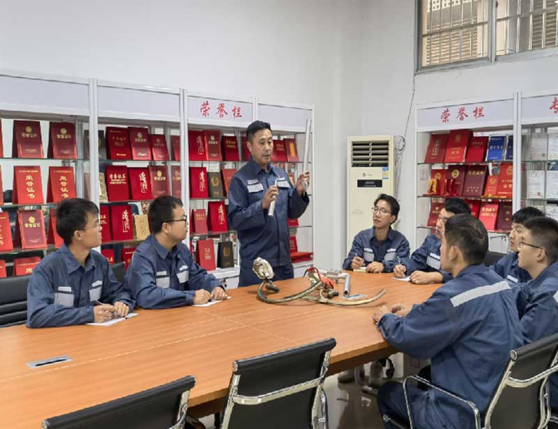 南方電網(wǎng)興義供電局創(chuàng)新工匠龍福剛向青年員工介紹工作室創(chuàng)新工器具的發(fā)明理論。