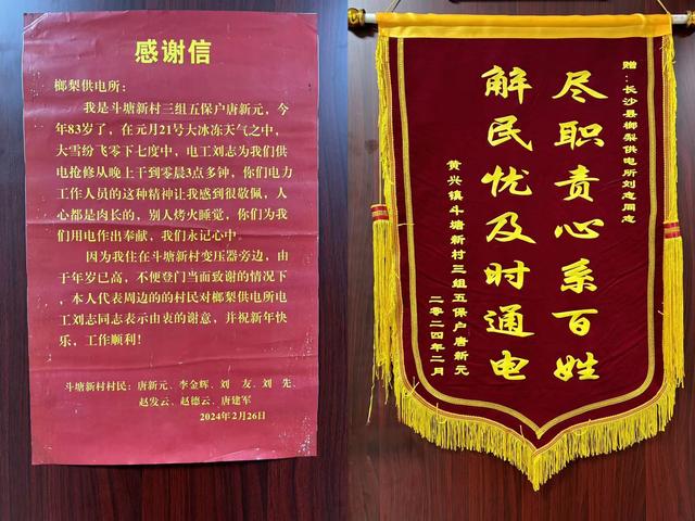 “每隔一段時(shí)間,你們就來(lái)幫忙檢查我們村高齡及獨(dú)居老人家里的線(xiàn)路,謝謝你們,真是辛苦了。”3月1日,斗塘新村83歲的村民唐新元老人將一面錦旗和一封感謝信送到了?梨供電所,以此表達(dá)對(duì)“電雷鋒”劉志的感激之情。