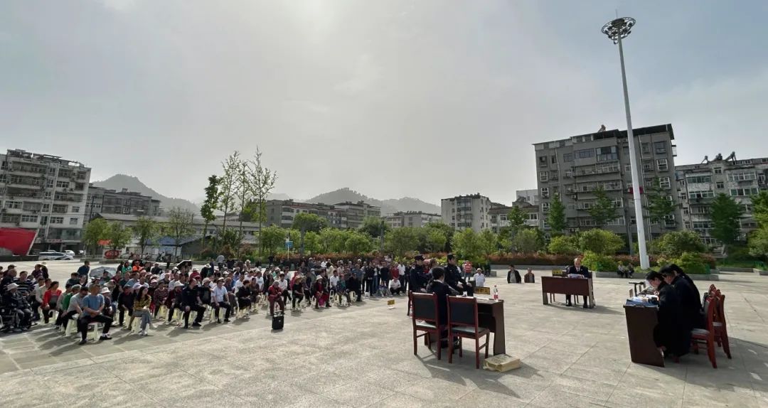4月23日下午,十堰市張灣區(qū)人民法院環(huán)境資源審判合議庭將法庭搬至柏林鎮(zhèn)廣場,現(xiàn)場開庭審理并當庭宣判一起因架設(shè)電網(wǎng)捕獵野生動物并致使一村民被電傷的刑事案件,來自柏林鎮(zhèn)各村委會干部、周邊村民、青年志愿者100余人現(xiàn)場旁聽。