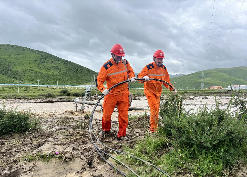 災(zāi)情發(fā)生后,國網(wǎng)阿壩縣供電公司高度重視,立即啟動Ⅲ級應(yīng)急響應(yīng),召開專題會議部署搶險救災(zāi)工作。搶險過程中,工作人員充分利用“科技+人工”巡線方式,通過無人機視角,把握道路情況、桿塔情況、河床情況等,為搶險提供安全保障,做到“搶險不冒險”。
