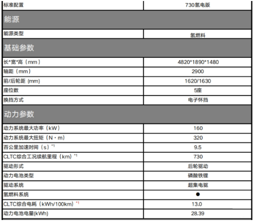 氫電版續(xù)航里程這里也標(biāo)注的很清楚,它是一款續(xù)航能達(dá)到730km的氫能源電動(dòng)車,車身尺寸和純電及增程版本保持不變。同樣也采用了后驅(qū)布局,并且匹配和增程式車型一樣的28.39kWh動(dòng)力電池,換句話說(shuō)就是氫燃料版車型將增程式車型用于發(fā)電的發(fā)動(dòng)機(jī)替換為用于發(fā)電的氫燃料。而氫燃料相比發(fā)動(dòng)機(jī)而言最大的優(yōu)勢(shì)則在于排放更環(huán)保、噪音控制更好,以及未來(lái)的使用成本上。