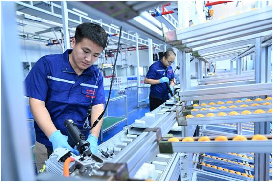 河南國鴻氫能科技有限公司生產(chǎn)車間內(nèi),工人正在生產(chǎn)線上忙碌。僧少琴攝