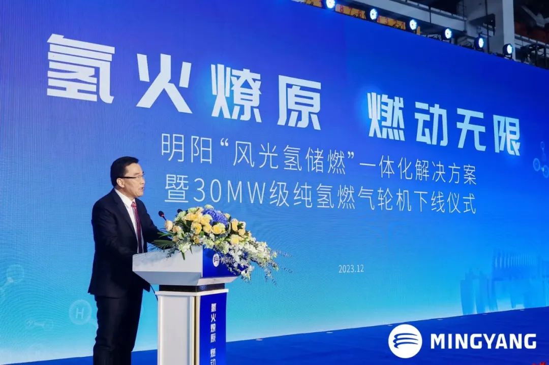 12月26日,由明陽智能子公司明陽氫燃動力科技有限公司(下稱“明陽氫燃”)自主研制推出的30MW級純氫燃氣輪機正式下線。該款燃氣輪機是全球首款30MW級純氫燃氣輪機,搭載明陽氫燃自主研發(fā)的“木星一號”純氫燃燒室,可實現(xiàn)百分之百的純氫燃燒和真正意義的“零碳排放”。