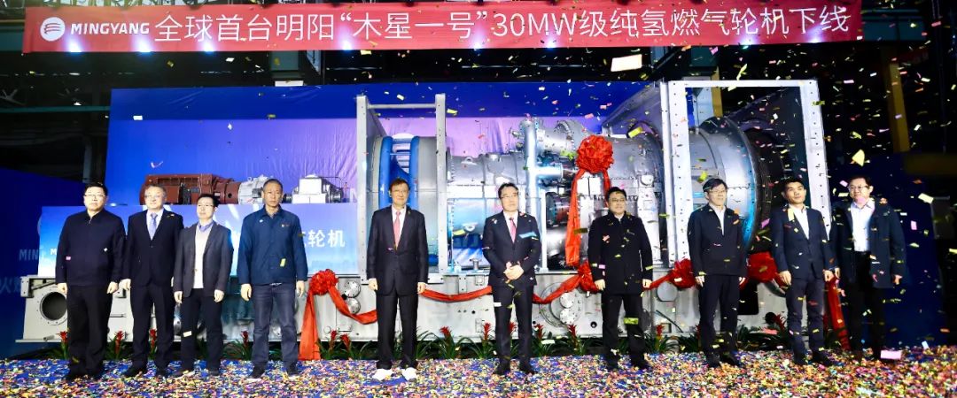 全球首臺!明陽“木星一號”30MW級純氫燃氣輪機下線