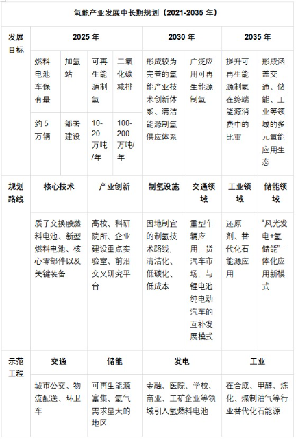 2022年3月23日的《氫能產(chǎn)業(yè)發(fā)展中長期規(guī)劃(2021-2035年)》,明確氫能的三大定位:未來國家能源體系的重要組成部分,用能終端實(shí)現(xiàn)綠色低碳轉(zhuǎn)型的重要載體”,戰(zhàn)略性新興產(chǎn)業(yè)和未來產(chǎn)業(yè)重點(diǎn)發(fā)展方向。除了《氫能產(chǎn)業(yè)中長期規(guī)劃(2021-2035年)》,幾乎是同一時(shí)間出臺(tái)的《十四五能源體系規(guī)劃》也指出了氫能行業(yè)規(guī)模化發(fā)展對(duì)全球能源體系的深刻變革的影響,其表述為:新型儲(chǔ)能和氫能有望規(guī)?;l(fā)展并帶動(dòng)能源系統(tǒng)形態(tài)根本性變革,構(gòu)建新能源占比逐漸提高的新型電力系統(tǒng)蓄勢待發(fā),能源轉(zhuǎn)型技術(shù)路線和發(fā)展模式趨于多元化。