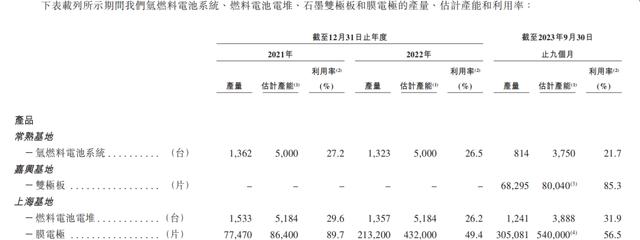 重塑能源也“預留”了充足的產能,報告期內,其氫燃料電池系統(tǒng)產能利用率分別為27.2%、26.5%及21.7%,燃料電池電堆產能利用率分別為29.6%、26.2%及31.9%,其余產品各期產能利用率均未超過90%。