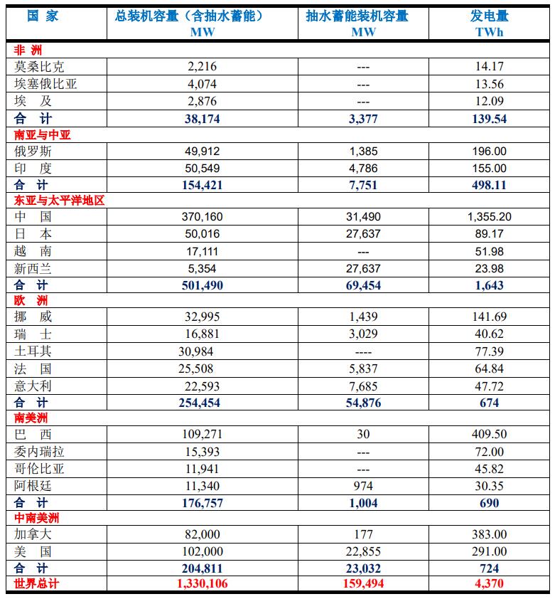 2020年世界上水力發(fā)電最多的地區(qū)是東亞和太平洋地區(qū),占全球總量的1,643/4,370=37.6%;而其中中國(guó)尤為突出,占全球總量的31%,占本地區(qū)的1,355.20/1,643=82.5%。