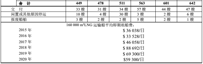 截至2020年底,有642艘運(yùn)輸船,包括43艘FSRU和58艘儲(chǔ)罐<50 000 m
