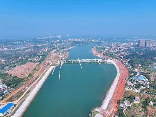 樞紐電站共配備4臺單機(jī)容量8.5MW燈泡貫流式水輪發(fā)電機(jī)組,轉(zhuǎn)輪直徑4.7m,總裝機(jī)34MW,電站廠房布置于右岸河床,計劃2024年4月全部機(jī)組投產(chǎn)發(fā)電,設(shè)計年均發(fā)電量可達(dá)1.15億度。