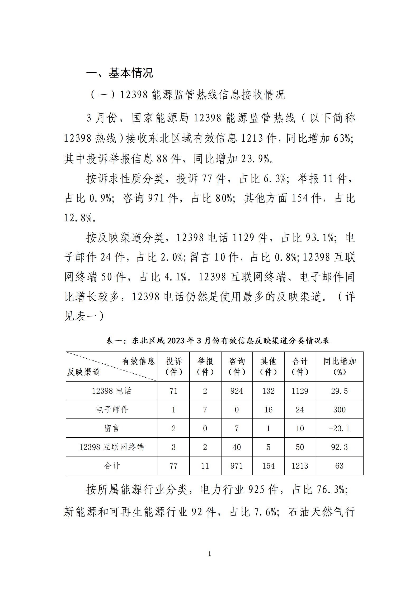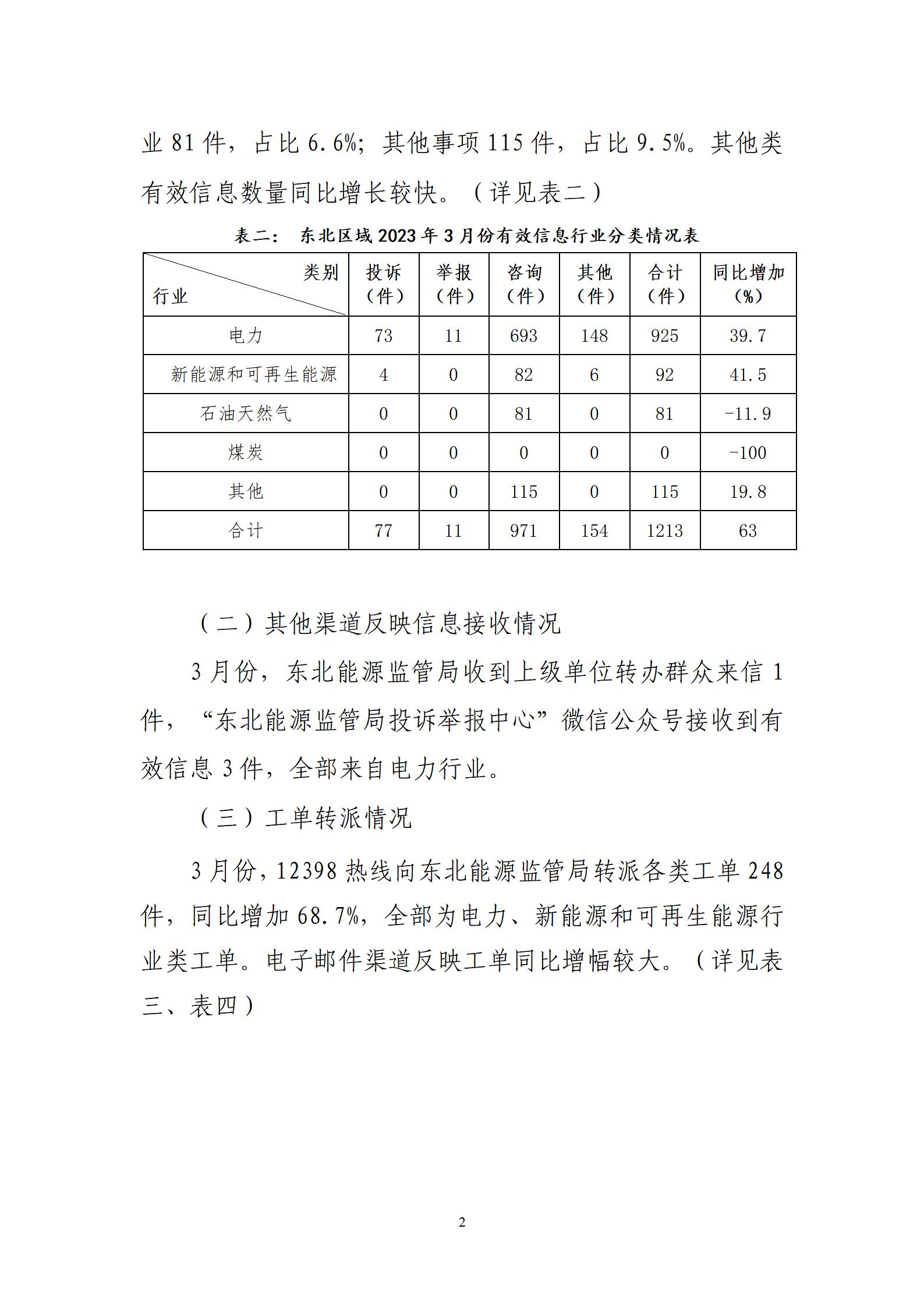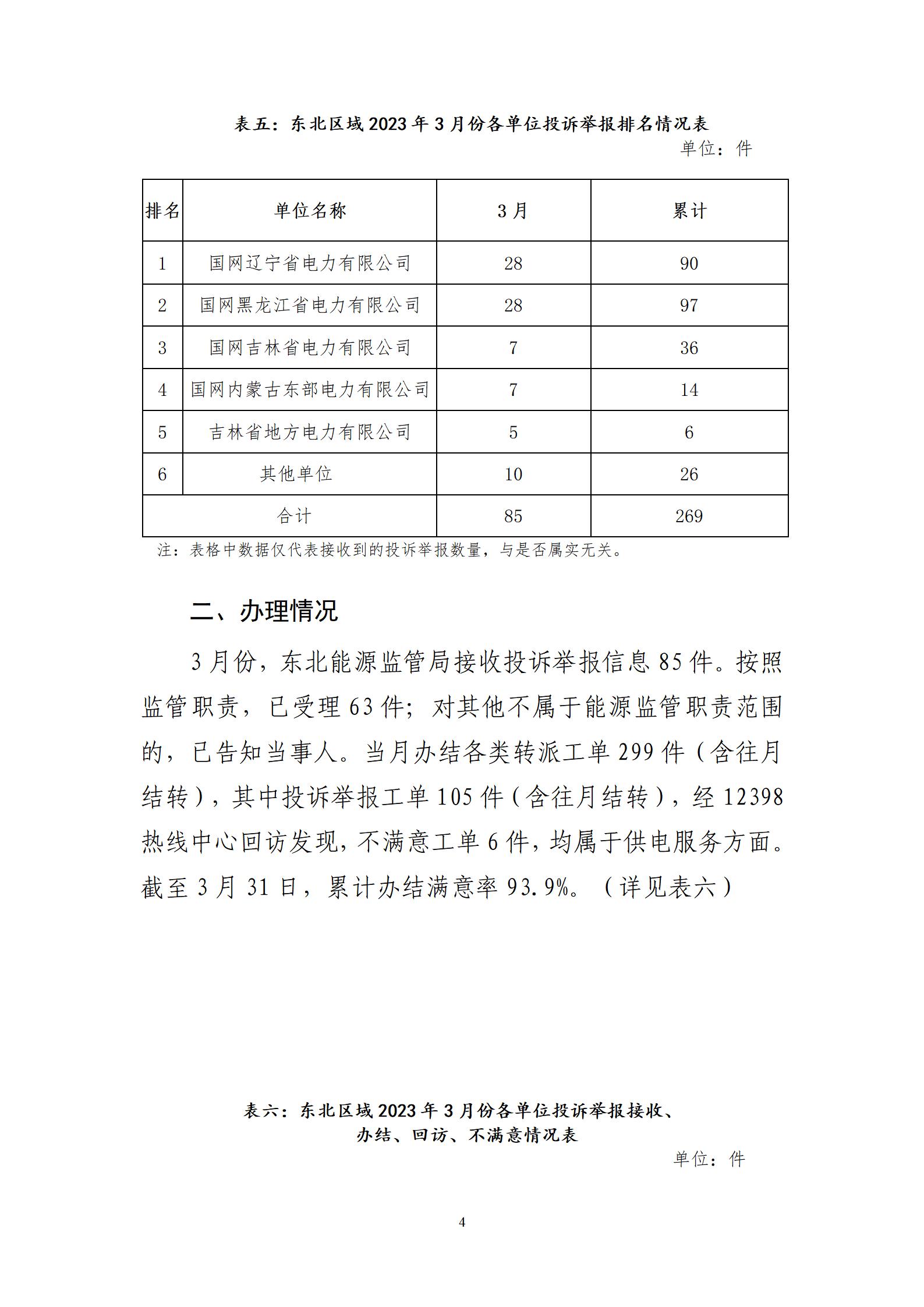 2023年3月份東北區(qū)域能源監(jiān)管投訴舉報辦理情況