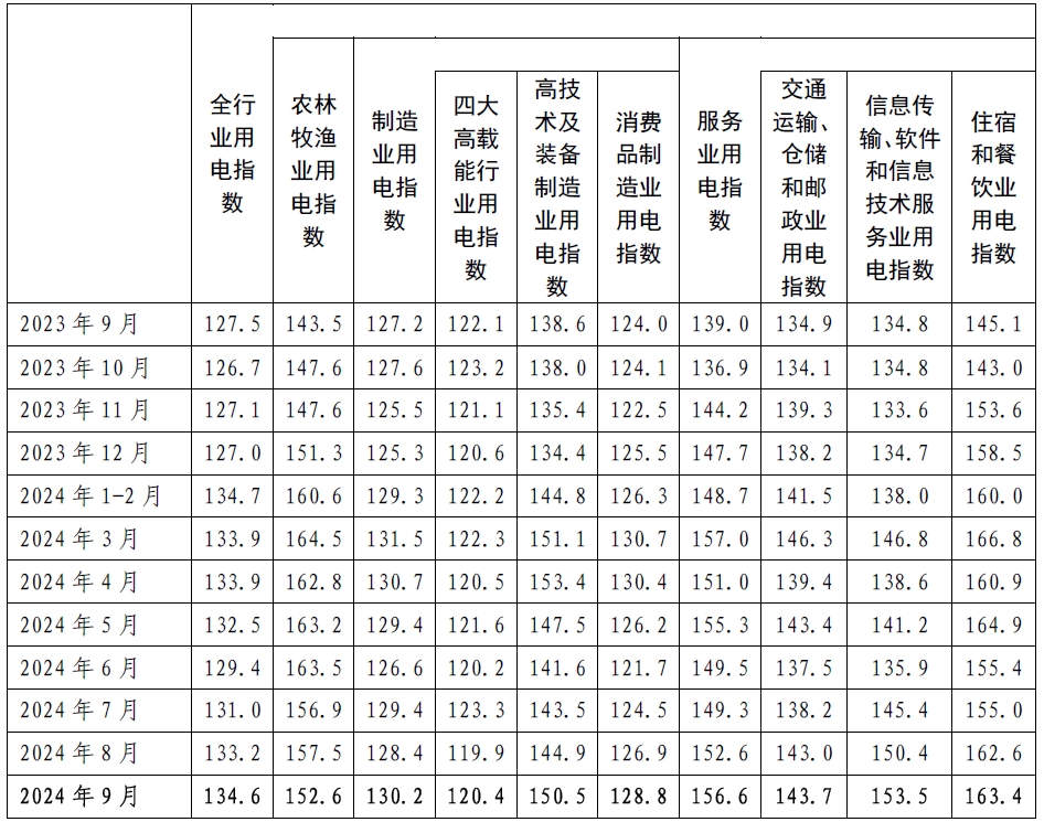 2024年9月,全行業(yè)用電指數(shù)為134.6,全行業(yè)用電量比2020年基期增長(zhǎng)了34.6%,年均增長(zhǎng)7.7%,同比增長(zhǎng)5.6%,全行業(yè)用電量保持平穩(wěn)增長(zhǎng)。
