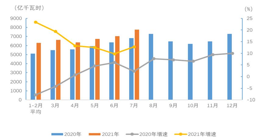 7月份,第一、二、三產(chǎn)業(yè)用電量增速分別為20.0%、9.3%和21.6%;城鄉(xiāng)居民生活用電量同比增長(zhǎng)18.3%。