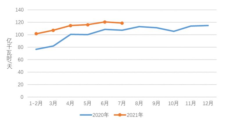 1-7月,化工行業(yè)用電量2911億千瓦時(shí),同比增長(zhǎng)11.4%,增速比上年同期提高14.2個(gè)百分點(diǎn);建材行業(yè)用電量2343億千瓦時(shí),同比增長(zhǎng)17.1%,增速比上年同期提高19.5個(gè)百分點(diǎn);黑色金屬冶煉行業(yè)用電量3749億千瓦時(shí),同比增長(zhǎng)14.5%,增速比上年同期提高14.2個(gè)百分點(diǎn);有色金屬冶煉行業(yè)用電量3880億千瓦時(shí),同比增長(zhǎng)9.0%,增速比上年同期提高6.9個(gè)百分點(diǎn)。