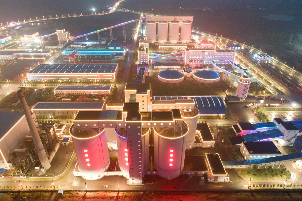 夜幕時(shí)分的曹家灘智慧礦山(2021年10月12日攝)。新華社記者 邵瑞 攝