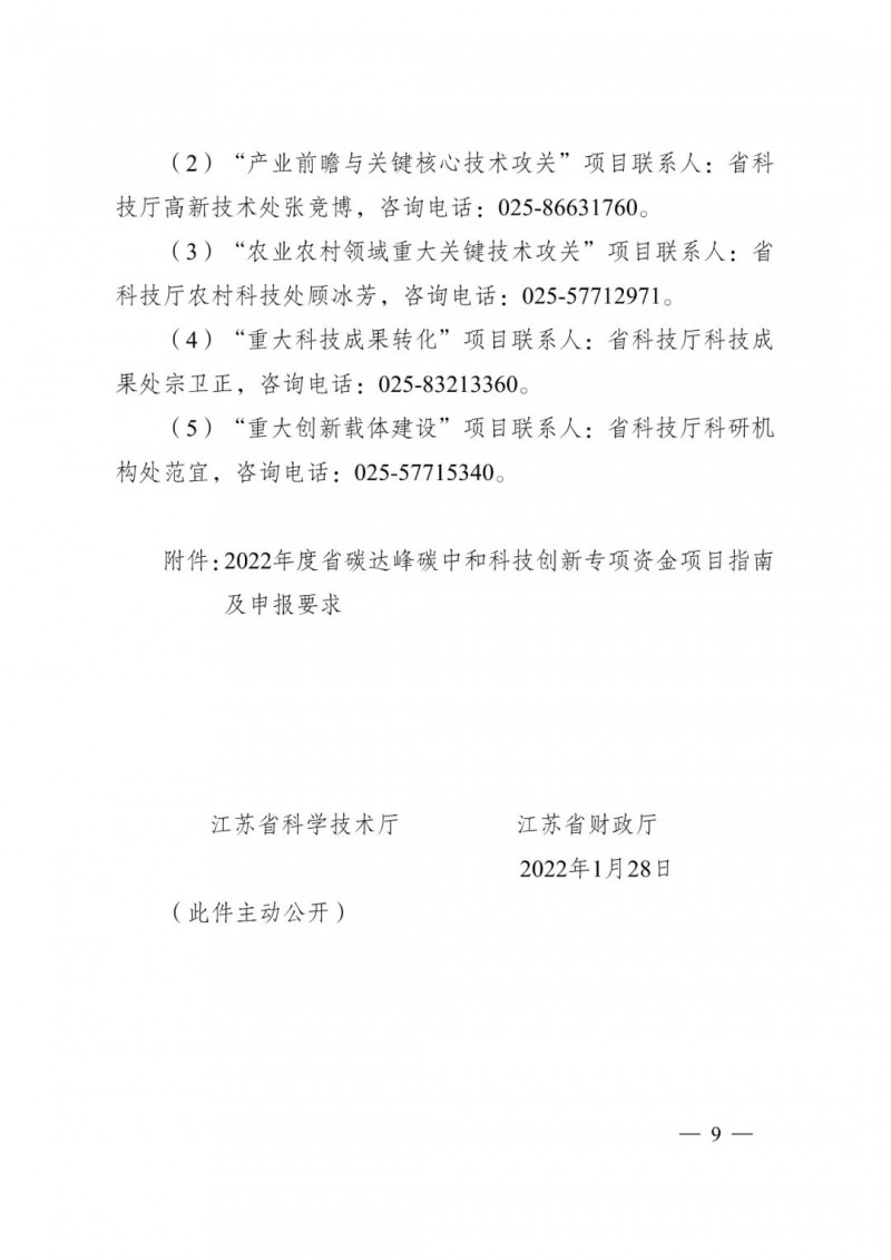 近日,江蘇省科學技術(shù)廳及財政廳發(fā)布《2022年度省碳達峰碳中和科技創(chuàng)新專項資金項目指南》。