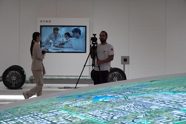 巴西勞動(dòng)者電視臺(tái)(TVT)記者M(jìn)auro Ram Ramos Pintos在拍攝園區(qū)規(guī)劃圖。中國(guó)日?qǐng)?bào)網(wǎng)記者 齊磊 攝