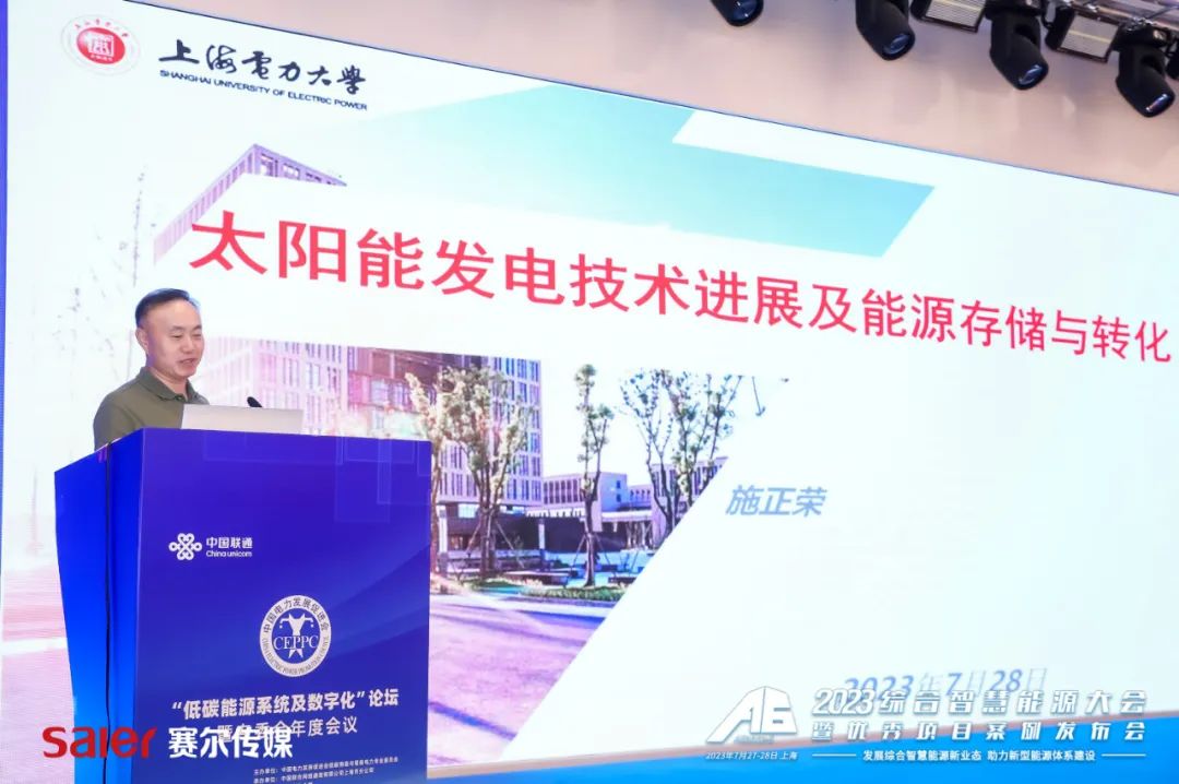 施正榮先生做太陽(yáng)能發(fā)電技術(shù)進(jìn)展及能源存儲(chǔ)與轉(zhuǎn)化主題報(bào)告